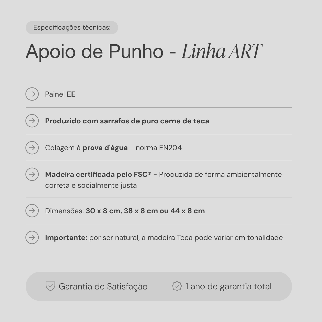 O apoio de punho linha ART é um produto produzido com madeira teca de árvores adultas, cultivadas em plantações iniciadas há mais de 20 anos e manejadas de forma sustentável. Este apoio é a escolha perfeita para quem busca funcionalidade e estilo em um produto com design exclusivo. Com ele você pode digitar com mais conforto, enquanto adiciona um toque de elegância e estilo ao seu set up.